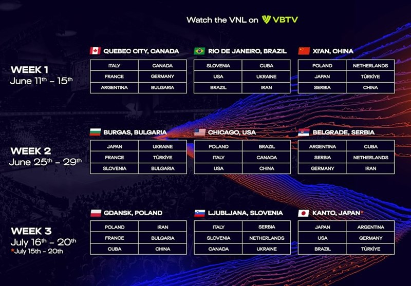 TEHRAN (Tasnim) – Volleyball World has revealed the host cities, match schedules, and ticketing details for both the men’s and women’s 2025 Volleyball Nations League (VNL), promising an electrifying season in volleyball hotspots across the globe.