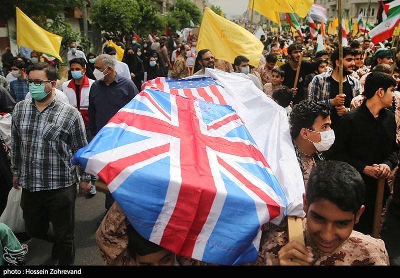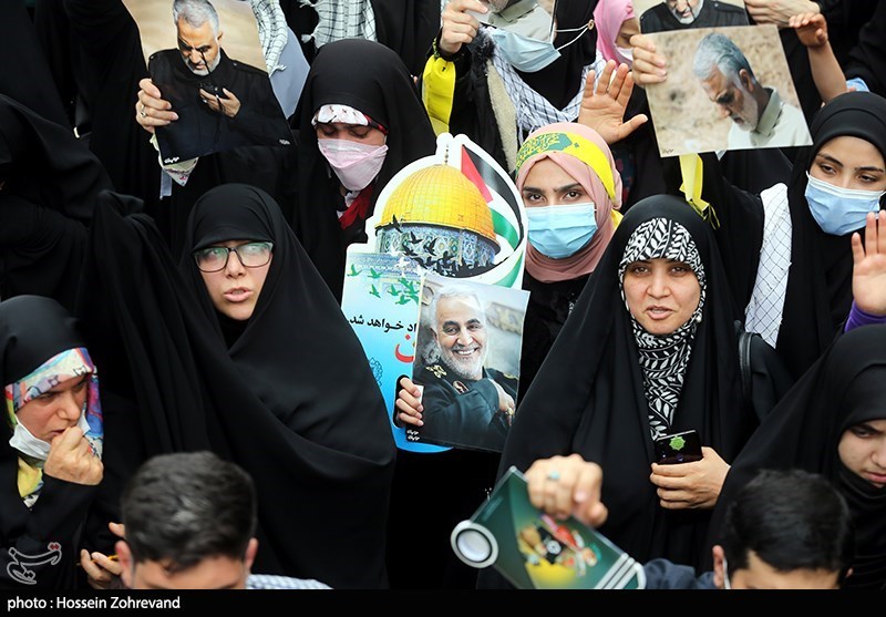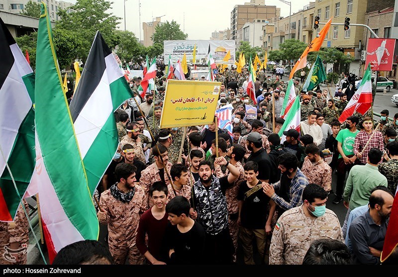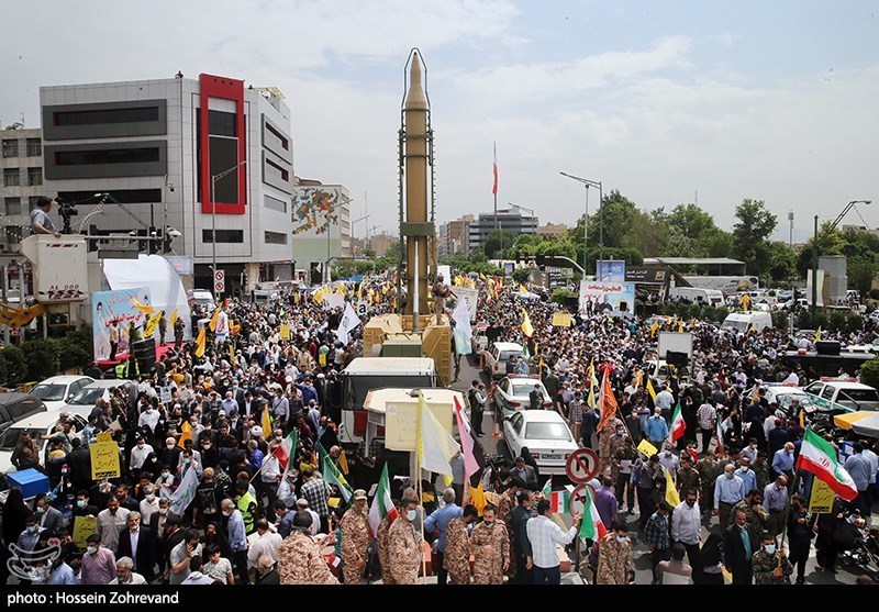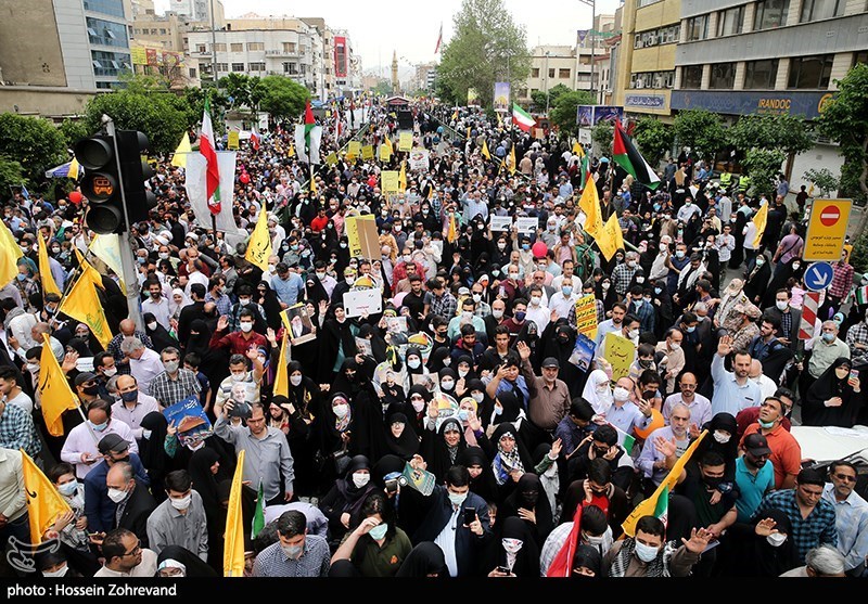 همزمان با فراسیدن آخرین جمعه ماه مبارک رمضان راهپیمایی روز جهانی قدس با حضور پر شور مردم روزه دار تهران برگزار شد.