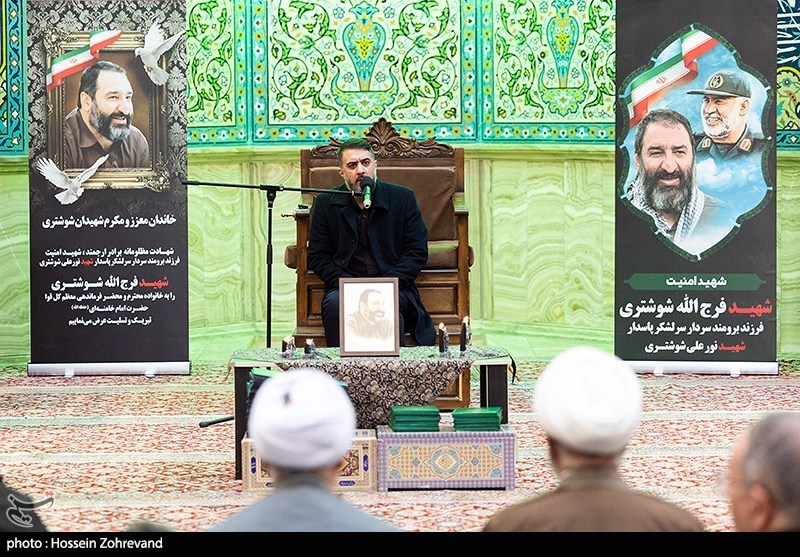 مراسم بزرگداشت شهید فرج الله شوشتری فرزند شهید سردار نورعلی شوشتری با حضور مردم تهران، خانواده شهید و مقامات لشکری و کشوری از جمله محمد باقر قالیباف، رئیس مجلس شورای اسلامی . سردار اسماعیل قانی فرمانده نیروی قدس سپاه پاسداران انقلاب اسلامی، در مسجد امام صادق علیه اسلام تهران در میدان فلسطین برگزار شد.