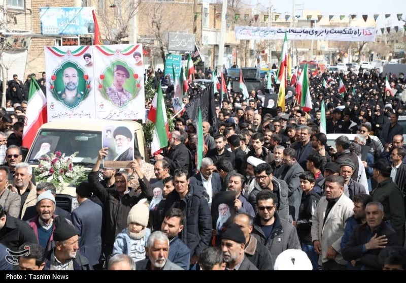 پیکر پاک و مطهر شهید جعفر مرزبان و شهید ابوالفضل علی بیگی بر روی دستان مردم ولایتمدار شهر بن تشییع و به خاک سپرده شد.