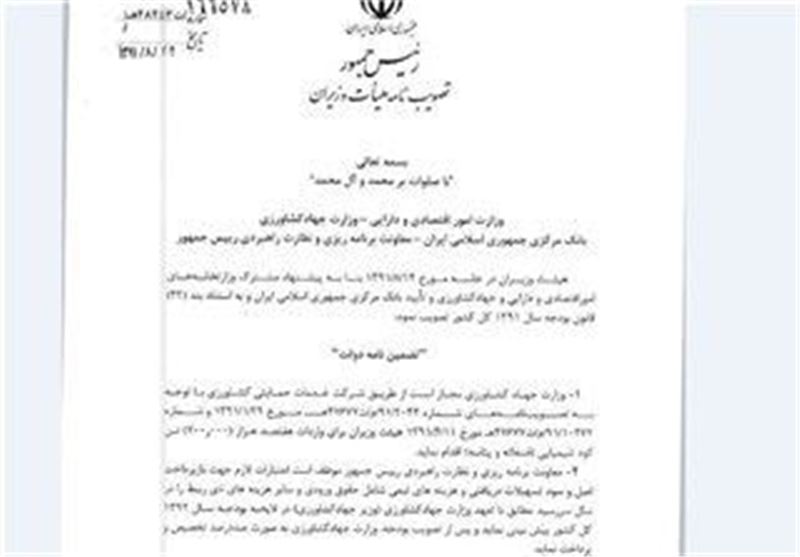 معاونت برنامه ریزی و نظارت راهبردی رئیس جمهوری نیز موظف شد اعتبارات لازم جهت بازپرداخت اصل و سود تسهیلات دریافتی و هزینه های تبعی شامل حقوق ورودی و سایر هزینه های ذی ربط را در سال سررسید مطابق با تعهدات وزارت جهاد کشاورزی در لایحه بودجه سال 92 پیش بینی کند و پس از تصویب بودجه، وزارت جهاد کشاورزی به صورت صددرصد تخصیص و پرداخت نماید.