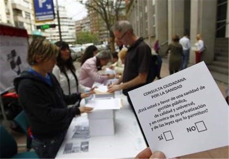 به گزارش گروه بین الملل خبرگزاری تسنیم به نقل از پایگاه خبری اسپانیایی زبان «ال پائیس»؛ مشاور بهداشت عمومی مادرید، پایتخت اسپانیا امروز، یکشنبه اعلام کرده است که طی برگزاری همه پرسی، 390 هزار تن از شهروندان مادریدی بر اجرای قانون خصوصی سازی بخش بهداشت و درمان رای منفی دادهاند.