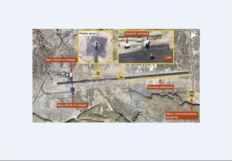 این هفته نامه با انتشار عکس ماهواره‌ای ادعا کرد ساخت این پایگاه در سال 2011 شروع شد و در سال 2013 نیز به پایان رسیده است. همچنین با بررسی عکس مورد ادعا این نشریه گزارش داد یک باند پرواز، یک رادار، یک هواپیمای بدون سرنشین 5 متری، سوله جدید و یک آنتن جدید ارتباطات از جمله تاسیسات  پایگاه قشم است.