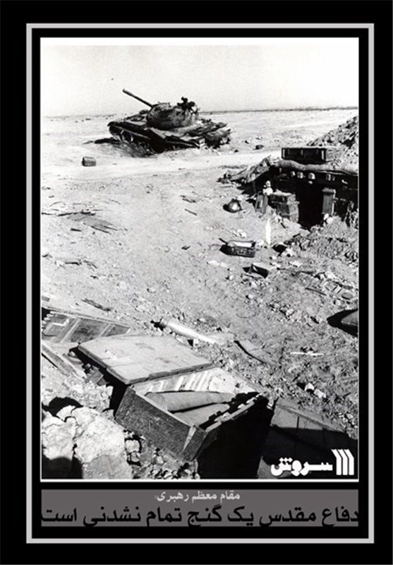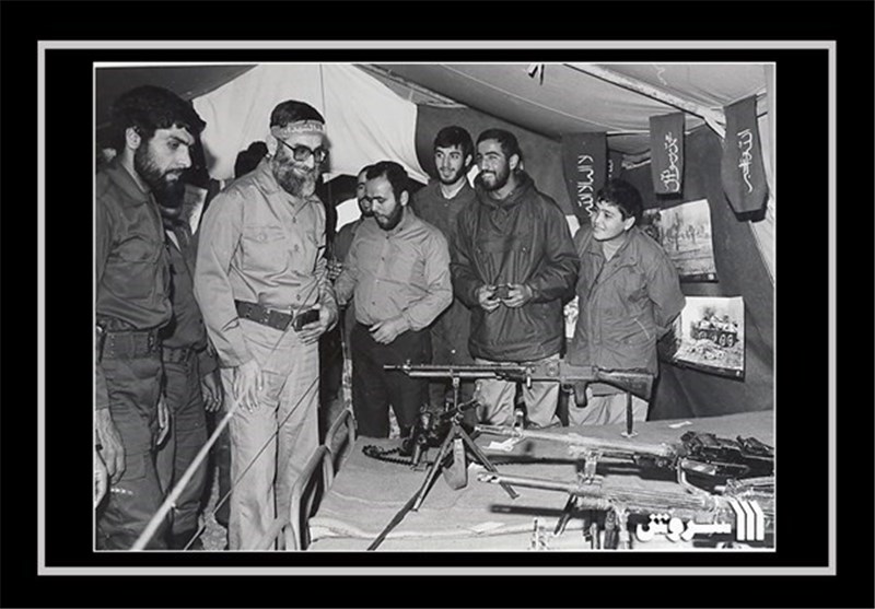 در میان این تصاویر یک قطعه عکس از رهبر انقلاب در دوران دفاع مقدس نیز به چشم میخورد که زینت بخش این تصاویر شده است.