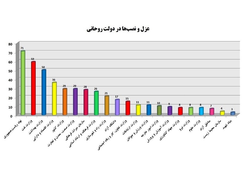 460 عزل و نصب در دوماه ابتدایی دولت/ نهاد ریاست‌جمهوری پیشتاز تغییرات + نمودار