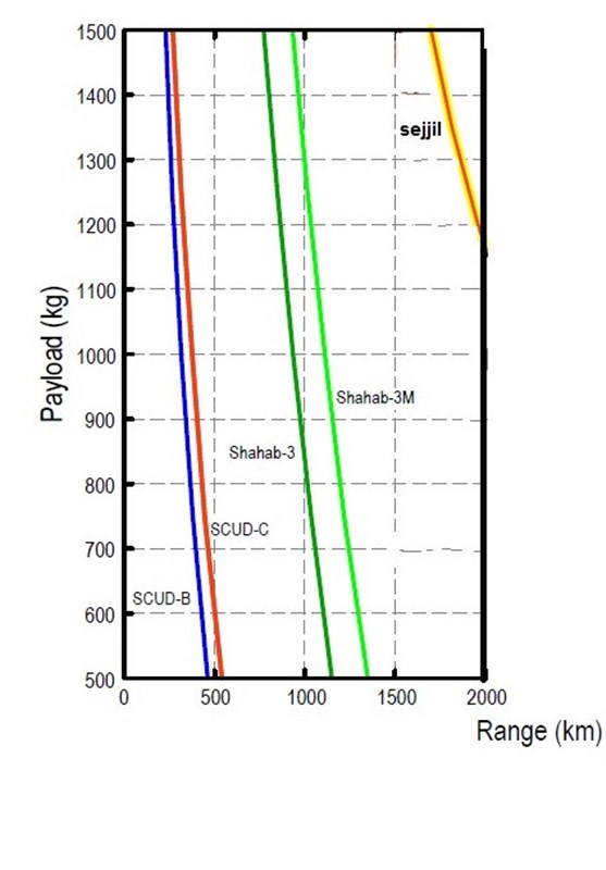 این تصویر نشان می‌دهد که برد موشک شهاب 3 اولیه با وزن کلاهک 800 کیلوگرم حدود 1000 کیلومتر است و این در حالی است که شهاب 3 ارتقا یافته با همین وزن کلاهک می‌تواند 1250 کیلومتر را بپیماید.
