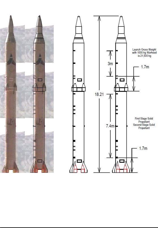 البته این تصویر بیانگر این موضوع نیز هست که موشک سوخت جامد سجیل قادر است، کلاهکی به وزن 1500 کیلوگرم را تا برد 1750 کیلومتری منتقل و هدف را نابود کند.