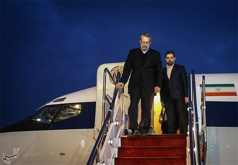 حجتالاسلام سید محمدحسن ابوترابیفرد نائب رئیس اول مجلس، مجید انصاری معاون پارلمانی رئیسجمهور و علاءالدین بروجردی رئیس کمیسیون امنیتملی و سیاستخارجی، در استقبال از لاریجانی در فرودگاه حاضر شدند.