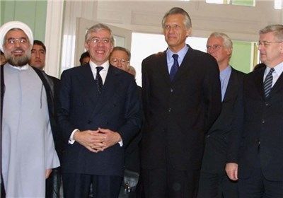حسن روحانی که به تازگی عهدهدار مدیریت تیم هستهای ایران شده بود، اکتبر 2003 یعنی مهرماه 82 در تالار حافظیه مجموعه سعدآباد مقابل یوشکا فیشر وزیر خارجه آلمان، جک استراو وزیر خارجه انگلستان و دومینیک دوویلپن وزیر خارجه فرانسه قرار گرفت. وزرای خارجه تروئیکای اروپایی البته پیش از دیدار روحانی با کمال خرازی به گفتوگو نشستند.