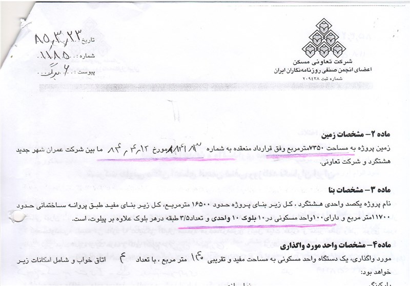 3- مدیرعامل محترم خبرگزاری تسنیم، اگر صفحه اول سند شماره (1) منتشره در آن خبرگزاری نیز به همراه دیگر صفحات قرارداد (که از حیث حقوقی قابل تفکیک و تجزیه نیست)، منتشر می‌شد، به خوبی برای خوانندگان خبر محرز و مشخص می‌شد که عنوان قرارداد منعقده با اعضا عبارت است از «قرارداد احداث و واگذاری مسکن» نه «قرارداد واگذاری زمین». در واقع شرکت تعاونی، متعهد است تا در قبال دریافت وجه از اعضا، همانند همه شرکت‌های تعاونی مسکن، نسبت به ساخت و تکمیل و واگذاری «یک واحد مسکونی» به آنان اقدام کند.