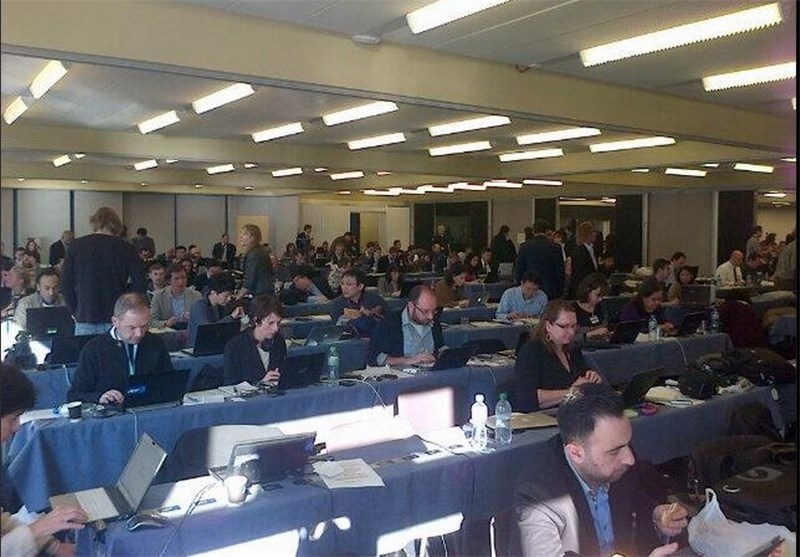 خبرنگاران حاضر در ژنو در حال پوشش خبری کنفرانس صلح سوریه
