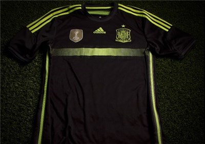 به گزارش خبرگزاری تسنیم، فدراسیون فوتبال اسپانیا پیراهن دوم تیم ملی این کشور در جام جهانی 2014 را به نمایش گذاشت. این پیراهن که تولید شرکت لوازم ورزشی آدیداس است، به رنگ سیاه بوده و در آن از نوارهایی به رنگ سبز روشن استفاده شده است. در قسمت فوقانی روی این پیراهن نیز لوگوی فدراسیون فوتبال اسپانیا در سمت چپ و نشان مخصوص قهرمان جهان به عنوان مدافع عنوان قهرمانی رقابت‌ها در سمت راست درج شده است.