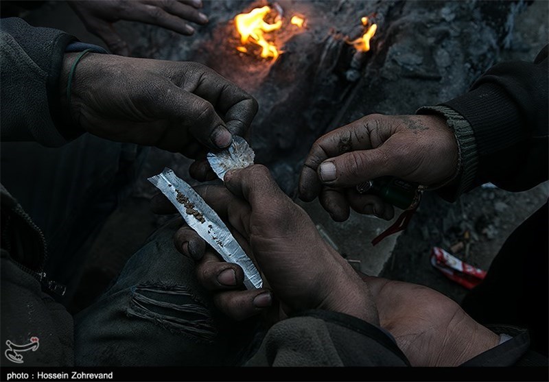 صحنه به خط شدن معتادان و تقسیم هروئین، خرید و فروش و مصرف علنی و بدون واهمه آن هم در روز روشن و حاشیه یکی از بزرگراههای اصلی تهران آنقدر شوکآور و گیجکننده هست که متوجه حضور کاسبهای دیگر نشوی ... حلقه دوباره کنار گُله آتشی که دیگر رمقی برایش نمانده جمع میشوند... لحظه به لحظه به جمع معتادان اضافه میشود و مردی که کاپشنی مشکی به تن کرده برای جلب توجه تازه از راه رسیدهها فریاد میزند: « بدو دوا (هروئین) فلهای... شیشه بیا» ...و با کاردی که از جیب پشت شلوار درمیآورد، گرد هروئین را روی کاغذ میریزد و بهاندازه پول مشتری دوایش را میدهد و مشتری بعدی... چند بار داد زدن کافی است تا دور تا دورش را معتادانی پر کنند که اسکناس به دست، دست بهسمتش دراز کردهاند.