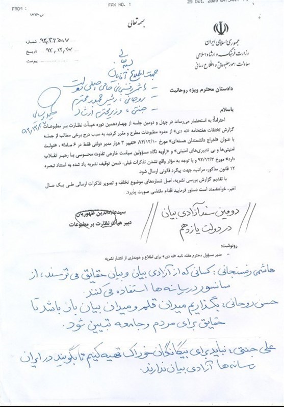 وزارت ارشاد دولت یازدهم نه تنها با این نشریات توهین کننده برخوردی نکرد بلکه از برخورد دستگاه قضایی با این هتاکان انتقاد شدید کرد.