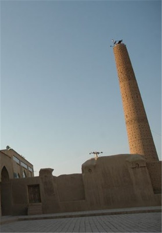 در جهت شمالی مسجد مناره آجری به ارتفاع 26 متر است که از مسجد فاصله دارد و قاعده آن 13 متر بدون سکو از روی زمین و قطر منتهی الیه آن در بالا 6.8 متر و مانند مناره مسجد جامع دامغان سر آن ساخته نیست بعضی گفتهاند که بر اثر زلزله خراب شده است ولی مشاهده میکنیم که سر آن منظم است و اگر بر اثر زلزله میبود غیر منظم بود.