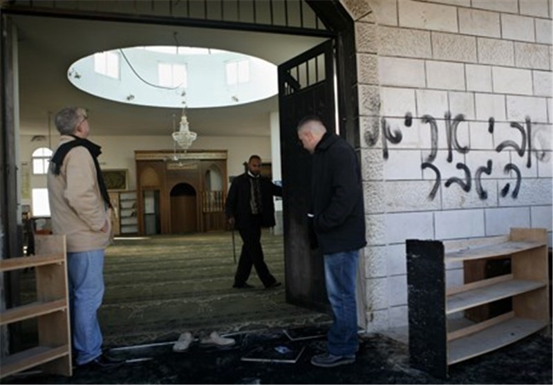 این افراد همچنین عبارتهای توهین آمیزی همچون" مرگ بر عرب، از اینجا بروید" بر روی دیوارهای این مسجد نوشتند.
