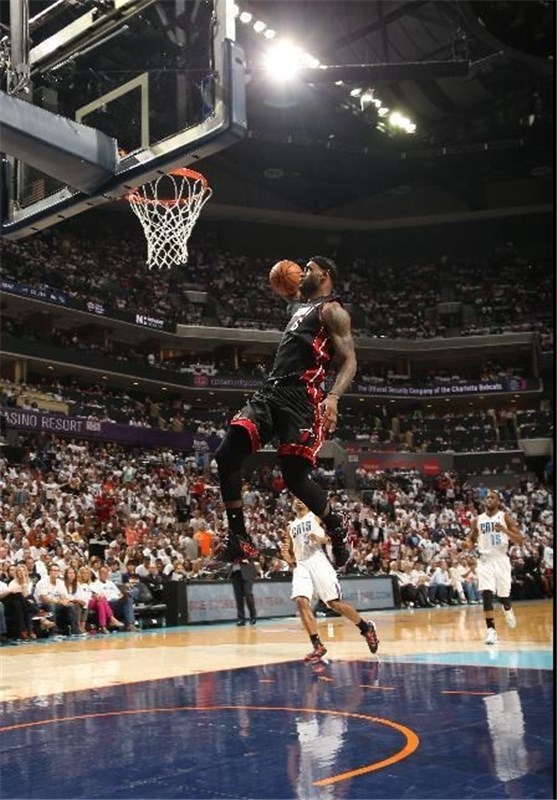 دیدار 2 تیم بابکتز و هیت در سالن «تایم وارنر کِیبِل» شهر شارلوت با نتیجه 98 بر 85 به سود میامی تمام شد. در این بازی، مایکل جردن، اسطوره بسکتبال آمریکا و مالک تیم شارلوت بابکتز روی نیکت تیمش نشسته بود و در حالی که هیچ کمکی از دستش بر نمیآمد فقط هنرنمایی لبران جیمز، فوق ستاره میامی را تماشا میکرد. جیمز در این بازی 30 امتیاز، 10 ریباند و 6 پاس گل داشت در حالی که آل جفرسون 20 امتیاز و 5 ریباند برای شارلوت به دست آورد. از این بازی 19633 تماشاگر دیدن کردند که در تاریخ باشگاه شارلوت بینظیر است. میامی در حال حاضر 3 بر صفر از شارلوت پیش است و در صورت کسب یک پیروزی دیگر راهی نیمه نهایی کنفرانس شرق میشود.