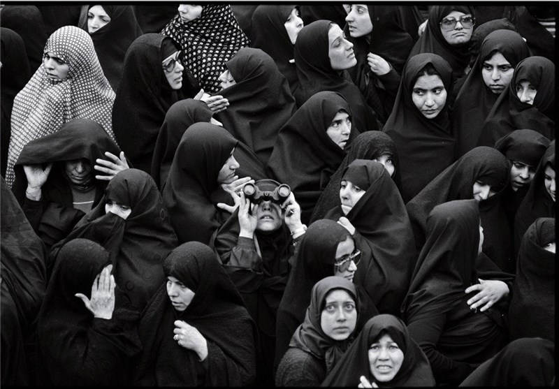 بیرون مدرسه رفاه. تعداد زیادی از زنان با پوشش چادر در انتظار دیدن رهبر خود هستند.