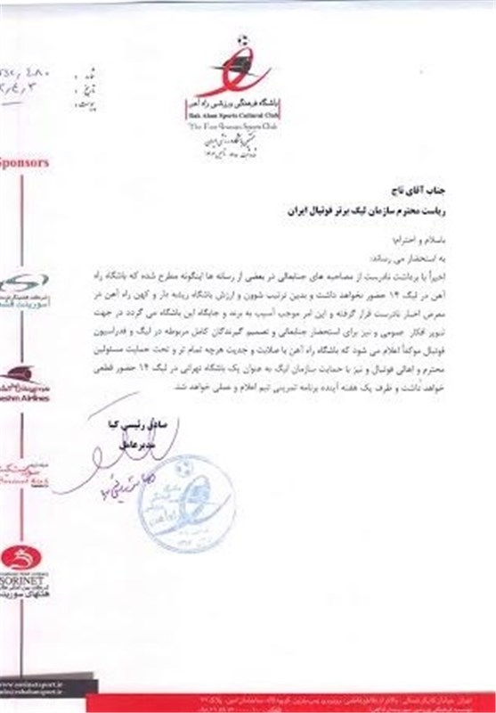 به گزارش خبرگزاری تسنیم و به نقل از سایت باشگاه راه آهن، امید گلمکانی، مدیر روابط عمومی و رسانه باشگاه راهآهن، در خصوص مسائلی که اخیرا در مورد انصراف تیم راه آهن از ادامه حضور در رقابتهای لیگ چهاردهم مطرح می شود، گفت: مسئولان باشگاه راه آهن روز سه شنبه، طی نامه ای رسمی به مهدی تاج، رئیس سازمان لیگ حرفه ای فوتبال ایران، بر حضور تیم فوتبال راه آهن در چهاردهمین دوره رقابتهای لیگ برتر فوتبال به عنوان یکی از نمایندگان فوتبال استان تهران در لیگ برتر و آغاز تمرینات این تیم از اواسط هفته آینده تاکید کرده اند.