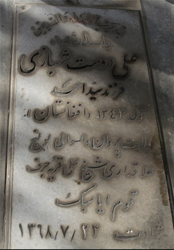 عکس زیر تصویر سنگ مزار شهید علیدوست شهبازی است. شهید شهبازی در سال 1343 در افغانستان به دنیا آمده و در جنگ « ما » شهید شده. روز 13 فروردین مهمان خانواده شهید در بهشت زهرا بودیم. برادر شهید از علاقه شهید به امام و انقلاب میگفت و این که چه مدت جبهه بوده و یک بار هم مجروح شده و دوباره به جبهه میرود. گفتم دستگاههای دولتی و متولیان ایثارگران از شما سراغی میگیرند؟ کمی فکر کرد و گفت: تا به حال فقط یک بار با ما تماس گرفتند آن هم از طرف شهرداری بود. گفتند "برای سقف بالای مزار باید پول بدهید". به هر شکلی شده این پول را جور میکنند.