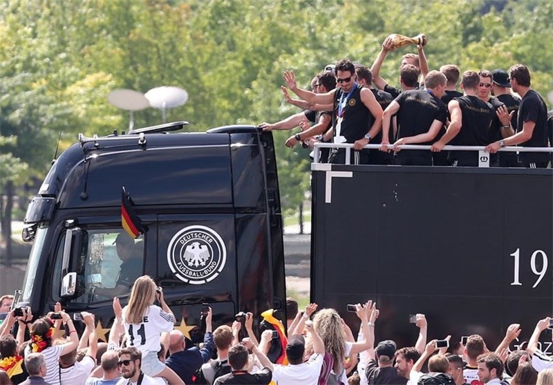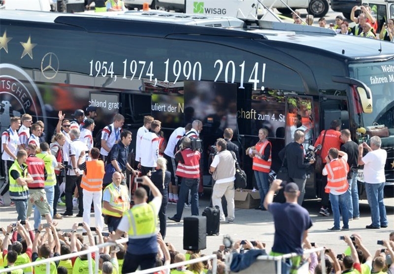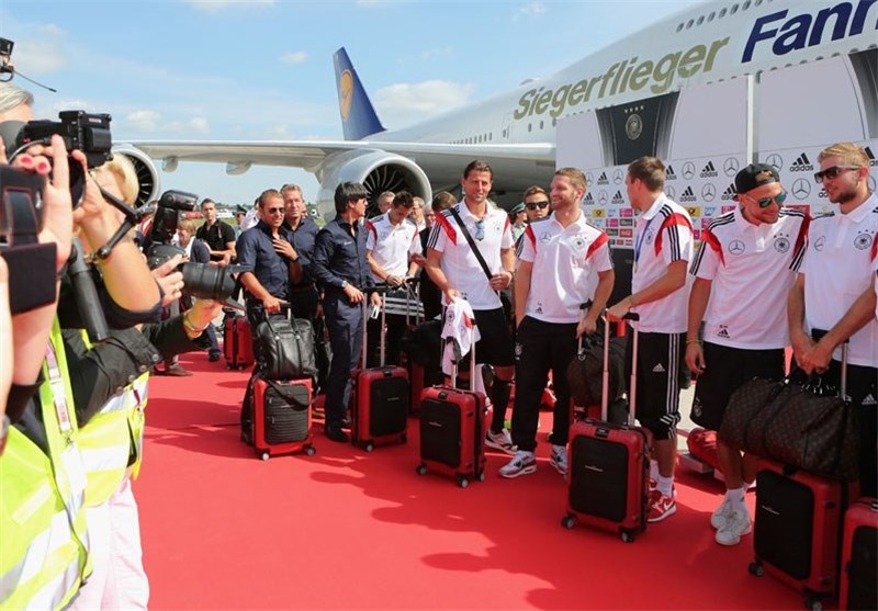 به گزارش خبرگزاری تسنیم، بازیکنان و اعضای تیم ملی آلمان با جام قهرمانی جام جهانی 2014 برزیل در فرودگاه شهر برلین به زمین نشستند. در حال حاضر مراسم استقبال از قهرمانان ژرمنها در شهر برلین با حضور بیش از 500 هزار نفر در حال برگزاری است.