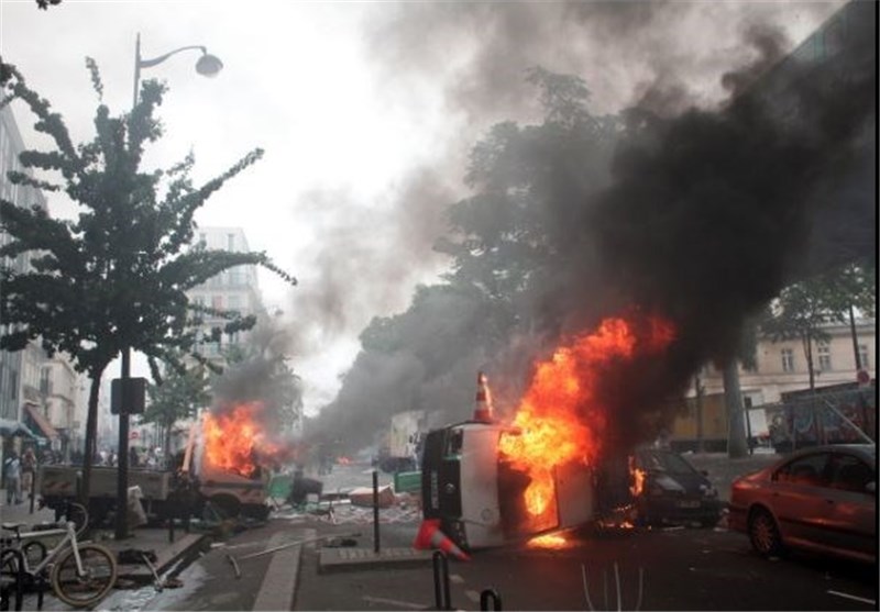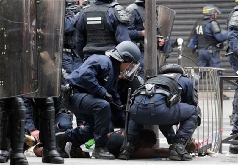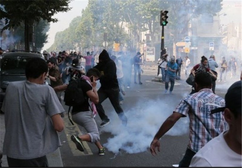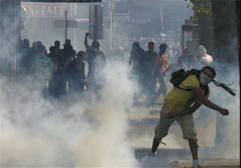 پلیس فرانسه برای پراکنده ساختن معترضین از گاز اشکآور استفاده کرد.