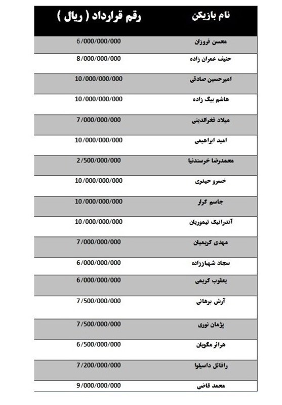 به گزارش خبرگزاری تسنیم و به نقل از سایت باشگاه استقلال، در راستای تاکید وزیر ورزش و جوانان و سازمان لیگ برتر فوتبال در شفاف سازی قراردادهای بازیکنان، باشگاه استقلال ریز قراردادهایش را منتشر کرد.