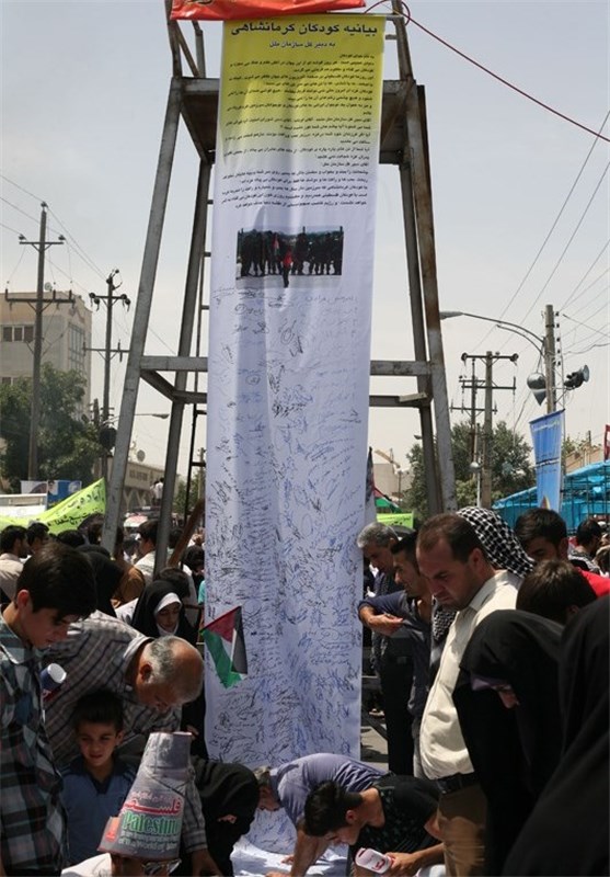 مردم مومن کرمانشاه با وجود گرمای هوا در آغازین روزهای مرداد ماه با حضور پرشور در راهپیمایی روز قدس و سردادن شعارهای "مرگ بر اسرائیل"، "مرگ بر آمریکا"، "مرگ بر داعش"، "اسرائیل عدوالله"، "فلسطین فلسطین حمایتت میکنیم" و "حمایت از فلسطین سفارش امام است" بار دیگر حمایت خود را از مردم مظلوم فلسطین و غزه اعلام کردند.