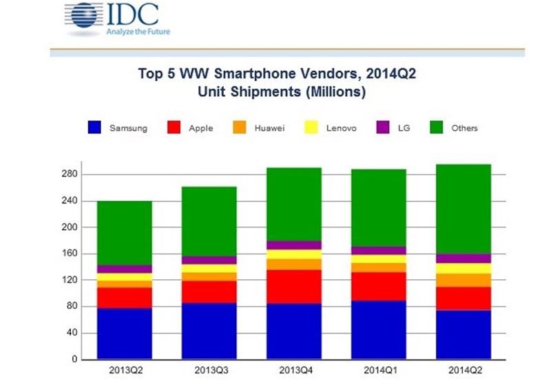 سامسونگ در حالی بازار خود را از دست داده که اپل همچنان به دنبالش با رشد 12.4 درصدی فروش به نسبت سه ماهه دوم سال 2013 توانسته 35.1 میلیون آیفون در فصل دوم سال جاری میلادی به فروش رساند.