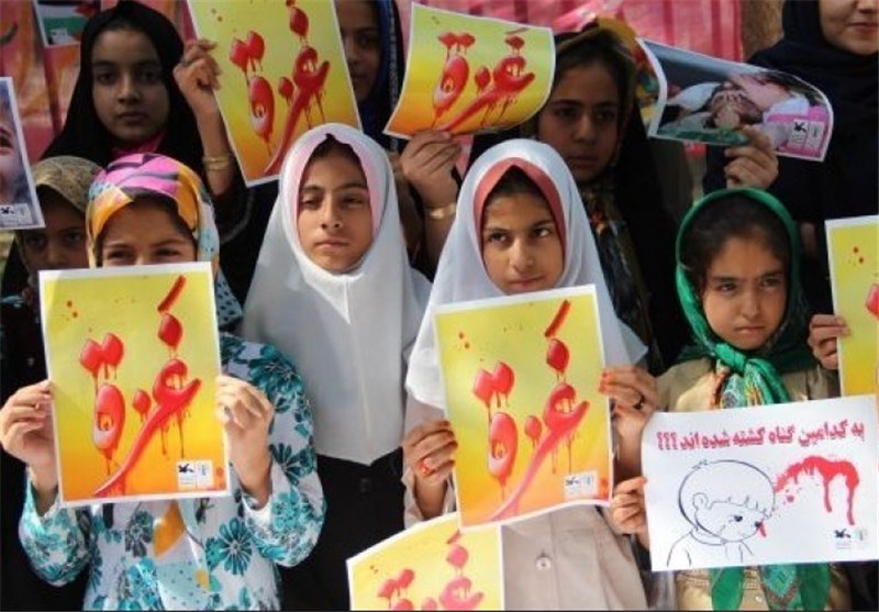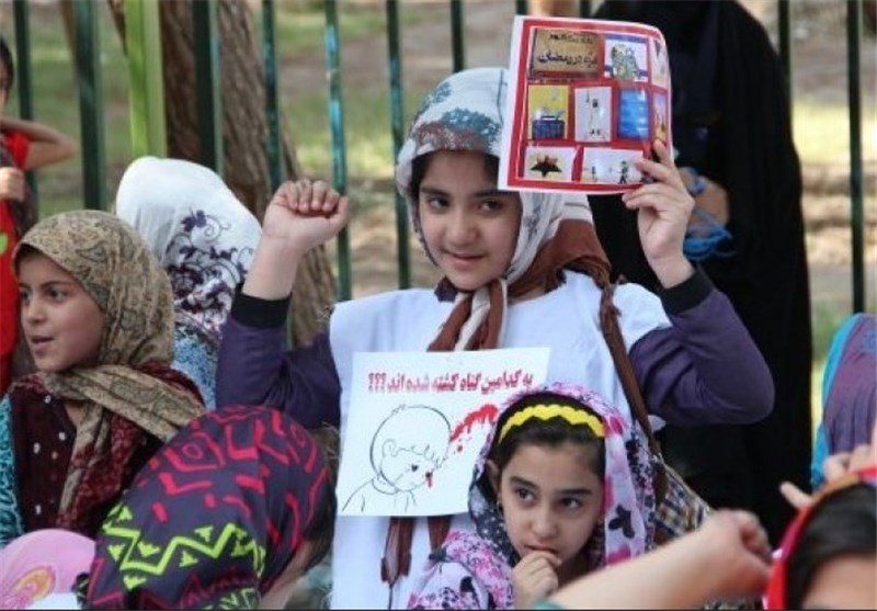 طنین‌انداز شدن فریاد"اسرائیل کودک‌‌کش نابود باید گردد" توسط کودکان گیلانی + تصاویر