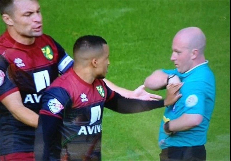 در دقیقه 60 این بازی مارتین اولسون، مدافع سوئدی نوریچ با خطایی که روی رایو فنلاپارا انجام داد دومین کارت زرد خود را دریافت کرد و متعاقب آن با کارت قرمز داور مسابقه جریمه شد. همین موضوع باعث عصبانیت این بازیکن 26 ساله شد و اقدام به هل دادن سیمون هوپر، داور مسابقه کرد، درست همان کاری که پیام صادقیان، هافبک پرسپولیس در دیدار این تیم مقابل فولاد در هفته دوم لیگ برتر ایران انجام داد.