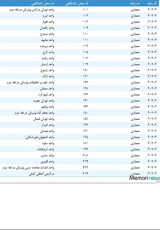 این پژوهشگر دکتری می‌نویسد: "تا سال گذشته تنها 3 واحد دانشگاهی تهران مرکزی، نجف آباد و علوم تحقیقات تهران و آن همه در تعداد بسیار کم و حدود 20 نفر پذیرش داشتند که قبول شدن در این آزمون کار بسیار سختی بوده و قبول شدگان مطمئناً دارای جنبه های مثبت بسیاری بودند که توانسته بودند در این ماراتن معماری پذیرفته شوند. اما امسال افزایش ظرفیت از 20 نفر به حداقل 300 نفر در 28 واحد دانشگاهی از تبریز تا شیراز و از بروجرد تا کیش مطمئناً نشان از یک کار بدون برنامه‌ریزی شده از سوی برنامه ریزان دانشگاه آزاد می‌باشد." (لینک)