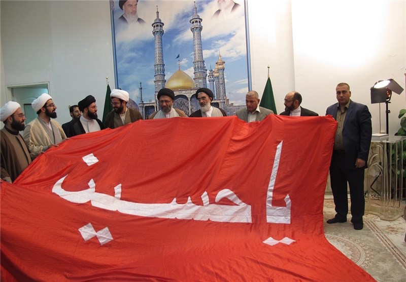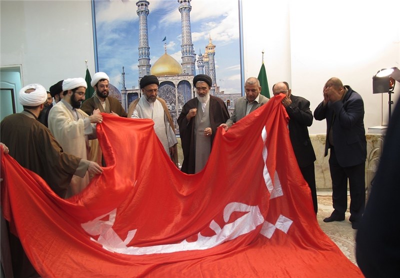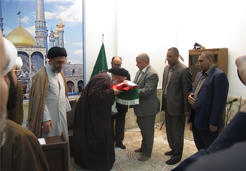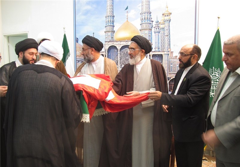 اهدای پرچم گنبد حرم امام حسین(ع) به تولیت حرم حضرت معصومه(س) به روایت تصویر