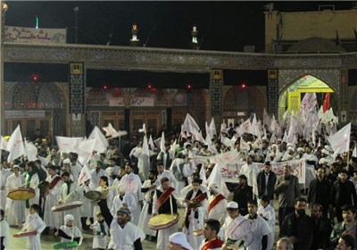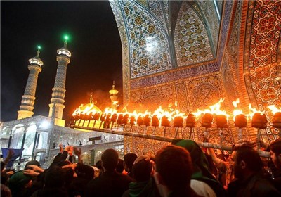 هیئت نجفیهای مقیم قم وارد حرم میشود و از بن جان ناله "حسین حسین" سر دادهاند، انگار دیگر نجفیها بهیقین رسیدهاند که حسین(ع) به آسمان رسیده است، در بین رسوم عزاداری هیئت نجفیها مشعل گردانی رسم دیرینهای است شب گذشته انگار نجفیها پس از گذشت بیش از هزار سال دوباره به یاد شبی که حسین(ع) پشت خیمهها خندق حفر کرده و آتش روشن کرده بود تا خیمهها هدف حمله حرامیان قرار نگیرد آتش روشن میکنند، شاید در باور آنها اینگونه دین خود را به پاهای پرآبله سهساله کربلا ادا میکنند.