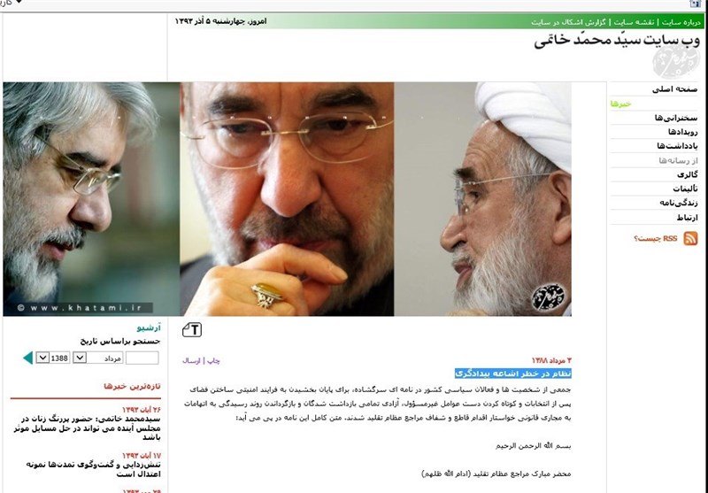به گزارش خبرنگار سیاسی خبرگزاری تسنیم، پس از آنکه رئیس جمهور نامه معرفی محمد فرهادی را برای رأی اعتماد نمایندگان مجلس به علی لاریجانی رئیس مجلس داد، خبری از امضای محمد فرهادی زیر نامه محمد خاتمی، میرحسین موسوی و مهدی کروبی از سران فتنه سال 88 در رسانهها منتشر شد که واکنشهای متفاوتی به این نامه صورت گرفت و با انتشار این خبر عباس عبدی، محمد فرهادی و محمدعلی نجفی امضای نامه محمد خاتمی را که با عنوان "نظام در خطر اشاعه بیدادگری" تکذیب کردند، در حالی که این نامه همچنان در آرشیو سایت محمد خاتمی وجود دارد و اسامی سه نفر نامبرده نیز بهعنوان امضاکنندگان نامه وجود دارد.