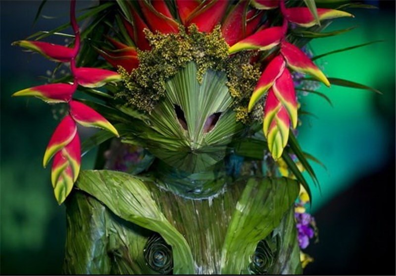 این هم یک مدل که در جریان یک جشنواره مد بیولوژیک در کلمبیا، لباسی متشکل از عناصر ارگانیک را بر تن کرده است. (AFP)