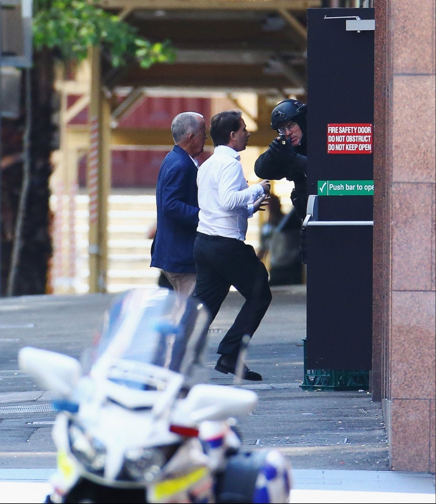 یکی از گروگانها که احتمالاً یکی از کارکنان رستوران بوده از دست گروگانگیرها فرار میکند