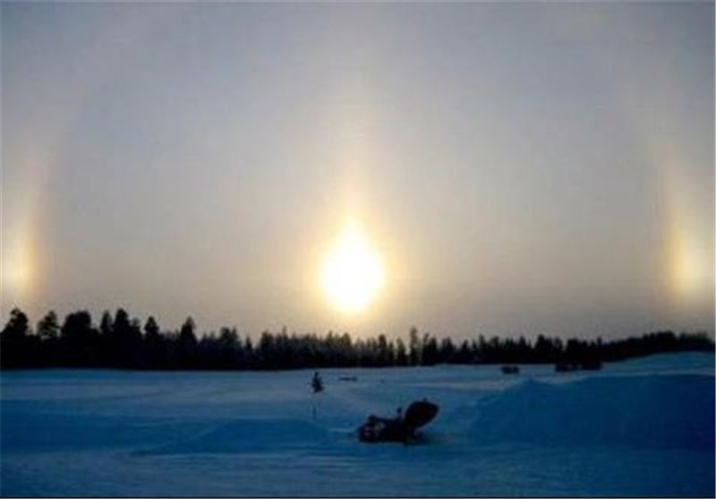 مشاهده سه خورشید یک پدیده آب و هوایی به نام "پارهلیا" یا "سانداگ" همان پدیده خورشید کاذب است.