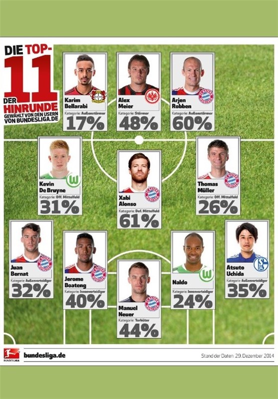 تیم منتخب نیمفصل اول بوندسلیگا به شرح زیر است:
