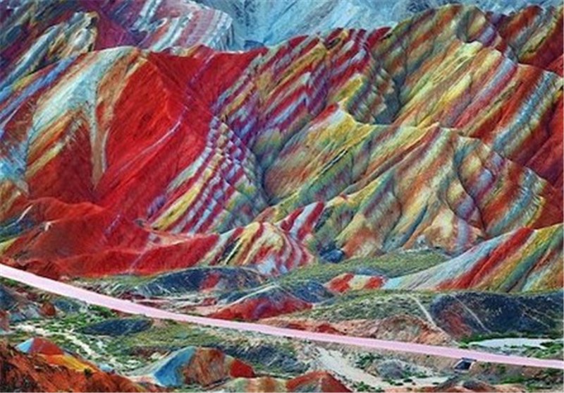 در شمال غربی گانسو یکی از استان های چین، و در پارک زمین شناسی ژانگی دانکسیا، یک مکان گسترده بسیار زیبا از کوه و زمین با سنگهایی به رنگ رنگین کمان وجود دارد. رگه هایی به رنگهای سرخ آتشین، نارنجی، کرم، سبز پر رنگ و زرد روشن در روی کوه نقش بسته اند که زیباترین "لایه کیک زمین شناسی" را که تا به حال دیده ایم، تشکیل داده اند.