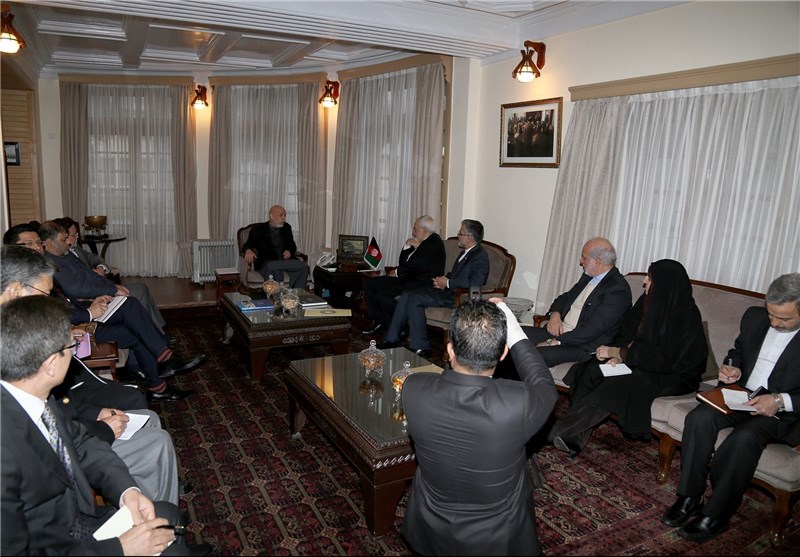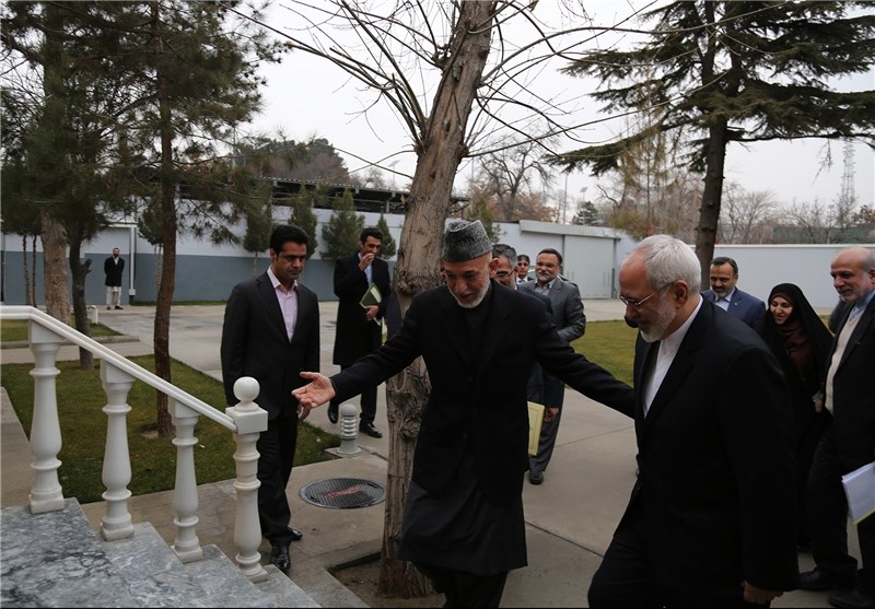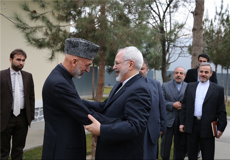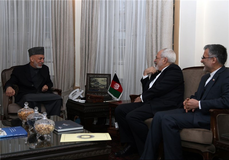 در دیدار ظریف و کرزی چگونگی روابط دوکشور در گذشته مورد بررسی قرار گرفت.