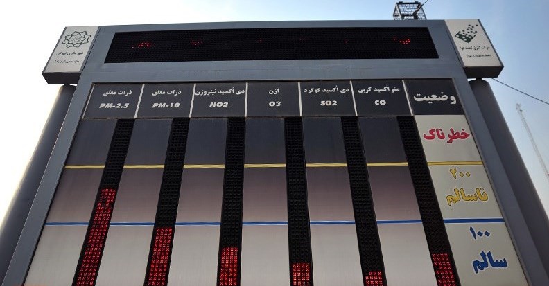 نمونه دستگاه سنجش مقدار آلودگی هوا که در یکی از مناطق تهران پایتخت جمهوری اسلامی ایران نصب شده و قرار است
