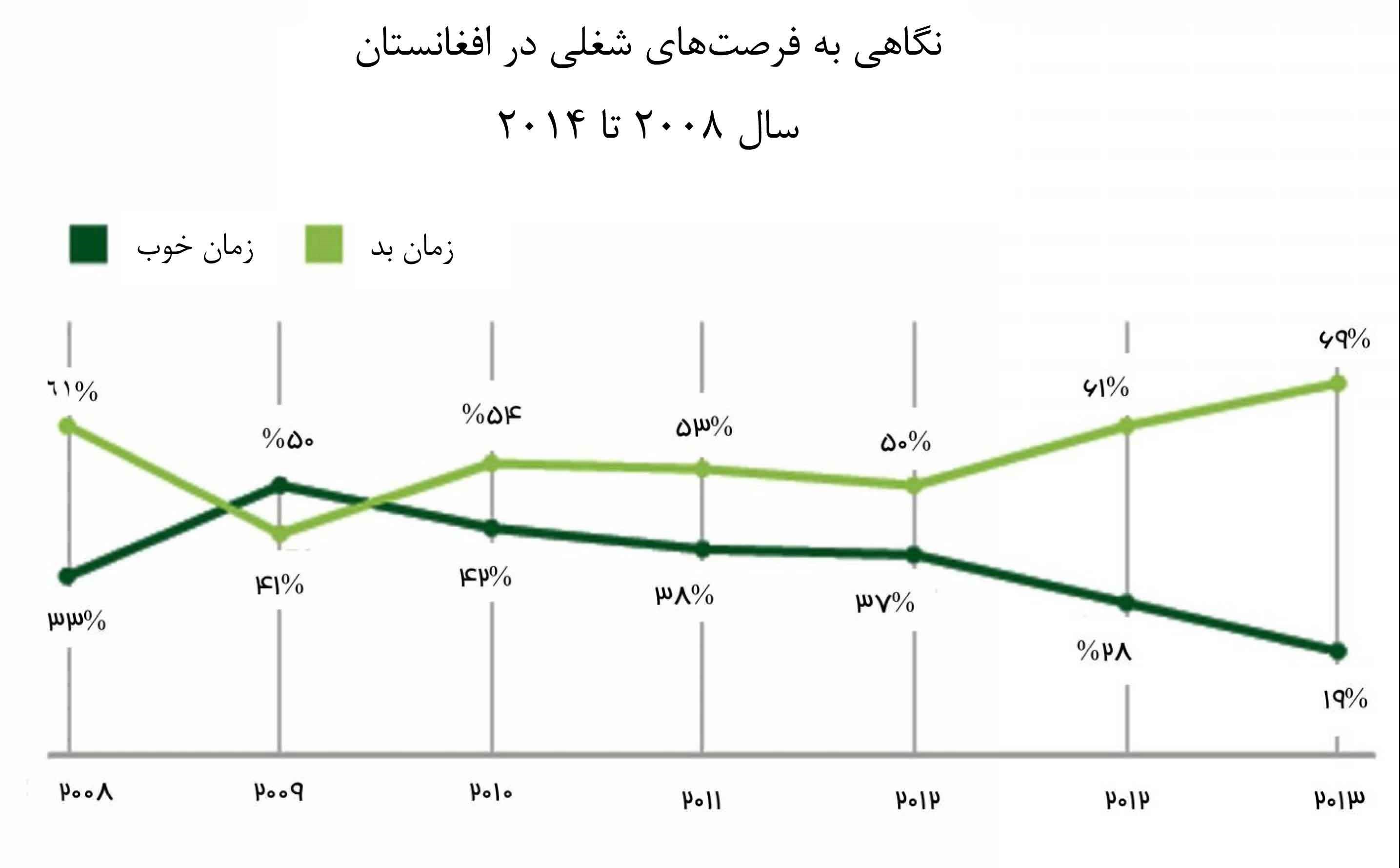 در گزارش این مؤسسه آمده است در حالی‌ که رشد در تمام بخش‌های اقتصاد افغانستان از خدمات گرفته تا زراعت در حال کاهش است، فرصت‌های شغلی برای شهروندان افغانستان بسیار محدودتر شده است. براساس این نظرسنجی، از نگاه افغان‌ها بازار کار هیچ وقت در هفت سال گذشته تا این اندازه بد نبوده است.