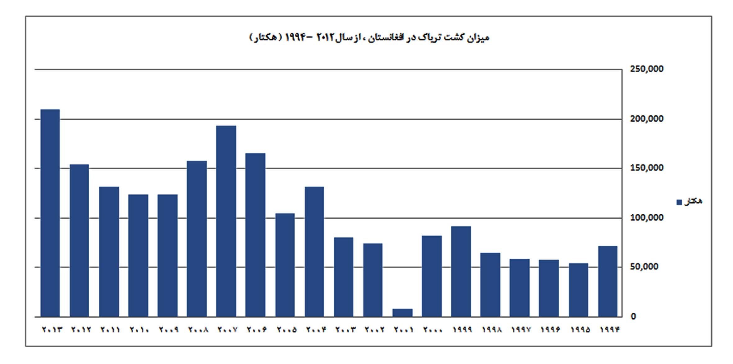 از آنجایی که اکثر مردم افغانستان از طریق کشاورزی امرار معاش می‌کنند، «Global Research» گزارش داد که کشاورزی افغانستان از 33.6 درصد در سال 08-2007 میلادی به 25.45 درصد در سال 2012-13 کاهش پیدا کرد اما براساس گزارش دیگری از تسنیم، میزان کشت مواد مخدر از 8 هزار هکتار قبل از سال 2001 میلادی به 131 هزار هکتار در سال 2004 و پس از آن به حدود 209 هزار هکتار در سال 2013 میلادی افزایش یافت.