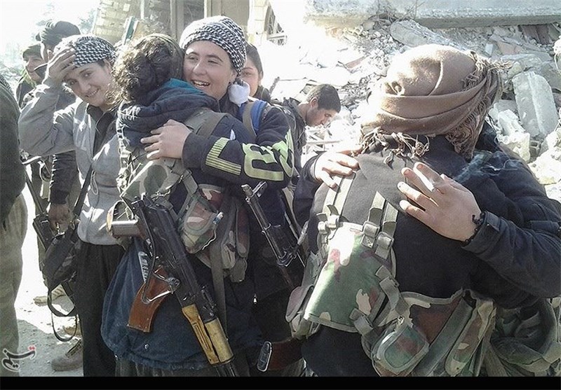 تصاویر شادی نیروهای مردمی پس از آزادی عین العرب