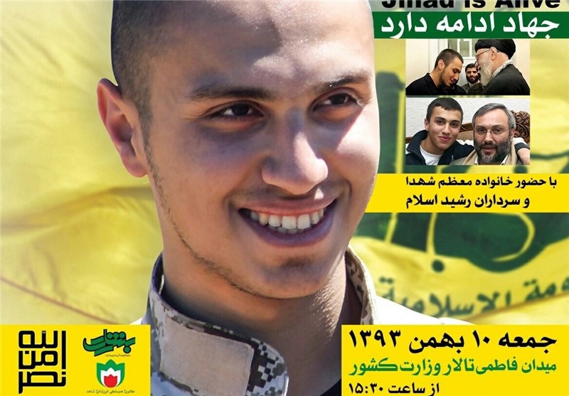 به گزارش خبرنگار فرهنگی خبرگزاری تسنیم، به مناسبت شهادت جهاد مغنیه، یادواره ای در تاریخ جمعه 10 بهمن ماه 1393 از ساعت 15:30 الی 17 و با سخنرانی برخی فرماندهان نظامی و مقامات لشگری و کشوری و مداحی مداحان اهل بیت(ع)، در تالار وزارت کشور واقع در میدان فاطمی برگزار میشود.