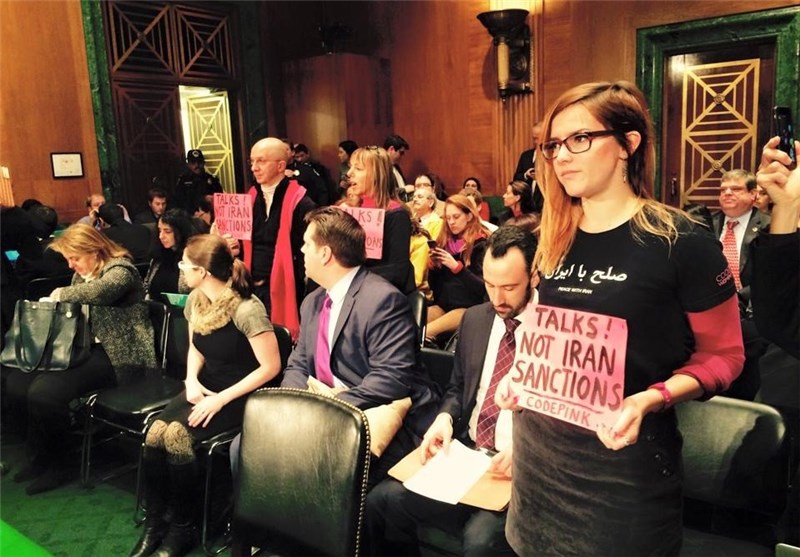 به گزارش گروه بینالملل خبرگزاری تسنیم، جلسه استماع کمیته بانکداری سنا درباره طرح تحریمهای جدید علیه برنامه هستهای ایران که روز گذشته برگزار شد، صحنه اعتراضات مخالفان اعمال تحریم علیه ایران بود.
