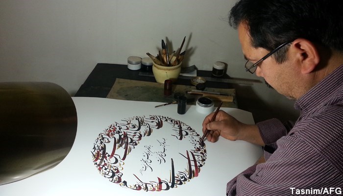 تصویر استاد نجیب‌الله انوری در حال خلق یک اثر هنری نفیس در افغانستان