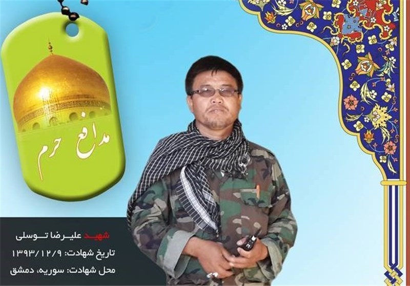 شهید «علیرضا توسلی» معروف به ابوحامد از رزمندگان دوران جهاد در افغانستان بوده که سالها پیش به همراه خانواده خود به ایران مهاجرت کرده و در مشهد مقدس زندگی میکرد. پس از آغاز نبرد سوریه و قدرت گرفتن حضور داوطلبانه نیروهای مختلف از کشورهای مختلف، جمعی از افغانستانیهای مهاجر ساکن شهرهای مختلف ایران، عراق، عمان، کویت و دیگر کشورهای منطقف، رهسپار این کشور شدند. شهید توسلی نیز یکی از این نیروها بود که به همراهی تعداد دیگری از مهاجران افغانستانی به سوریه رفته بود. گویا این نیروها در کنار یکدیگر یک تیپ نظامی با نام «فاطمیون» تشکیل دادهاند که در کنار ارتش سوریه به حفاظت از حرم حضرت زینب(س) و مبارزه با گروهکهای تکفیری مشغول هستند.