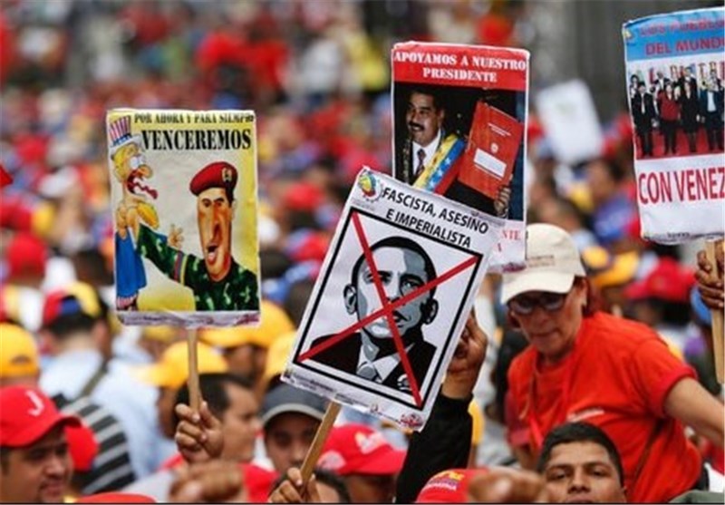 تظاهرات گسترده مردمی مقابل ساختمان شورای ملی در اعتراض به امپریالیسم آمریکایی در «کاراکاس» پایتخت ونزوئلا